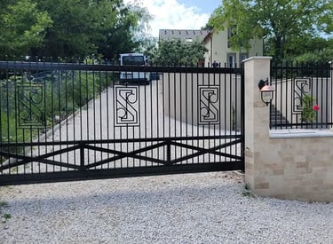 Masszív, egyedi tervezésű kapu.